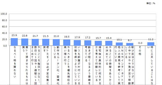 また、「物を定位置に戻す」、「動作のルーチン化」を全体の20%を超える方が選択しています。